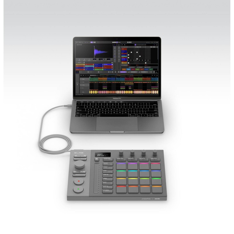 Serving as a solid foundation that supports a huge range of creative styles, the AlphaTheta SLAB is a dedicated hardware controller for Serato Studio DAW, which allows producers and DJs to create album-quality beats and remixes with a modern, sample-based workflow. SLAB has been designed as a dedicated controller to further unlock the creative power of Serato Studio. As soon as SLAB is plugged in, Serato Studio unlocks in full, for free—putting powerful, hands-on production within everyone’s reach.