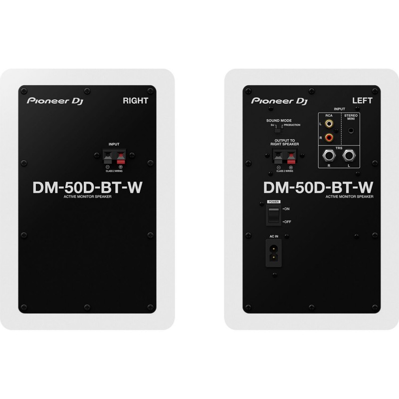 DJs looking for a pair of studio speakers will be thrilled with white Pioneer DJ DM-50D-BT, a pair of high-quality studio monitors with DSP that includes a DJ/Production switch, providing two distinct performance articulations for respective applications—all from a single set of speakers. The integrated Bluetooth receiver allows you to stream audio from your smartphone, tablet, or Mac/Windows computer.